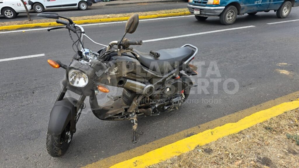 Elementos de Tránsito Municipal se encargaron de los peritajes y aseguraron la motocicleta de la marca Honda Navi, de color negro, con placas L3445J, así como la camioneta, una Chrysler Town & Country de color blanco, con matrícula JJL-83-46 de Jalisco, conducida por el señor Serafín Z., A.