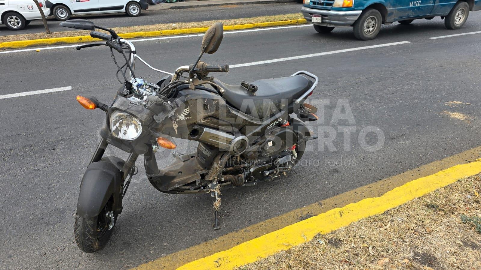 Elementos de Tránsito Municipal se encargaron de los peritajes y aseguraron la motocicleta de la marca Honda Navi, de color negro, con placas L3445J, así como la camioneta, una Chrysler Town & Country de color blanco, con matrícula JJL-83-46 de Jalisco, conducida por el señor Serafín Z., A.