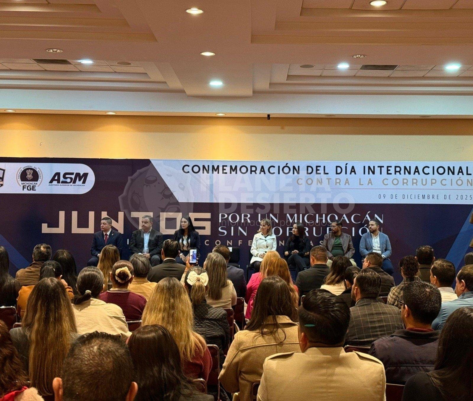 Morelia, Michoacán, 09 de diciembre de 2025. — En el marco del Día Internacional contra la Corrupción, la Auditoría Superior de Michoacán (ASM) reafirmó su compromiso con la transparencia y la rendición de cuentas al encabezar el acto protocolario de inicio del ciclo de conferencias “Juntos por un Michoacán sin Corrupción”.