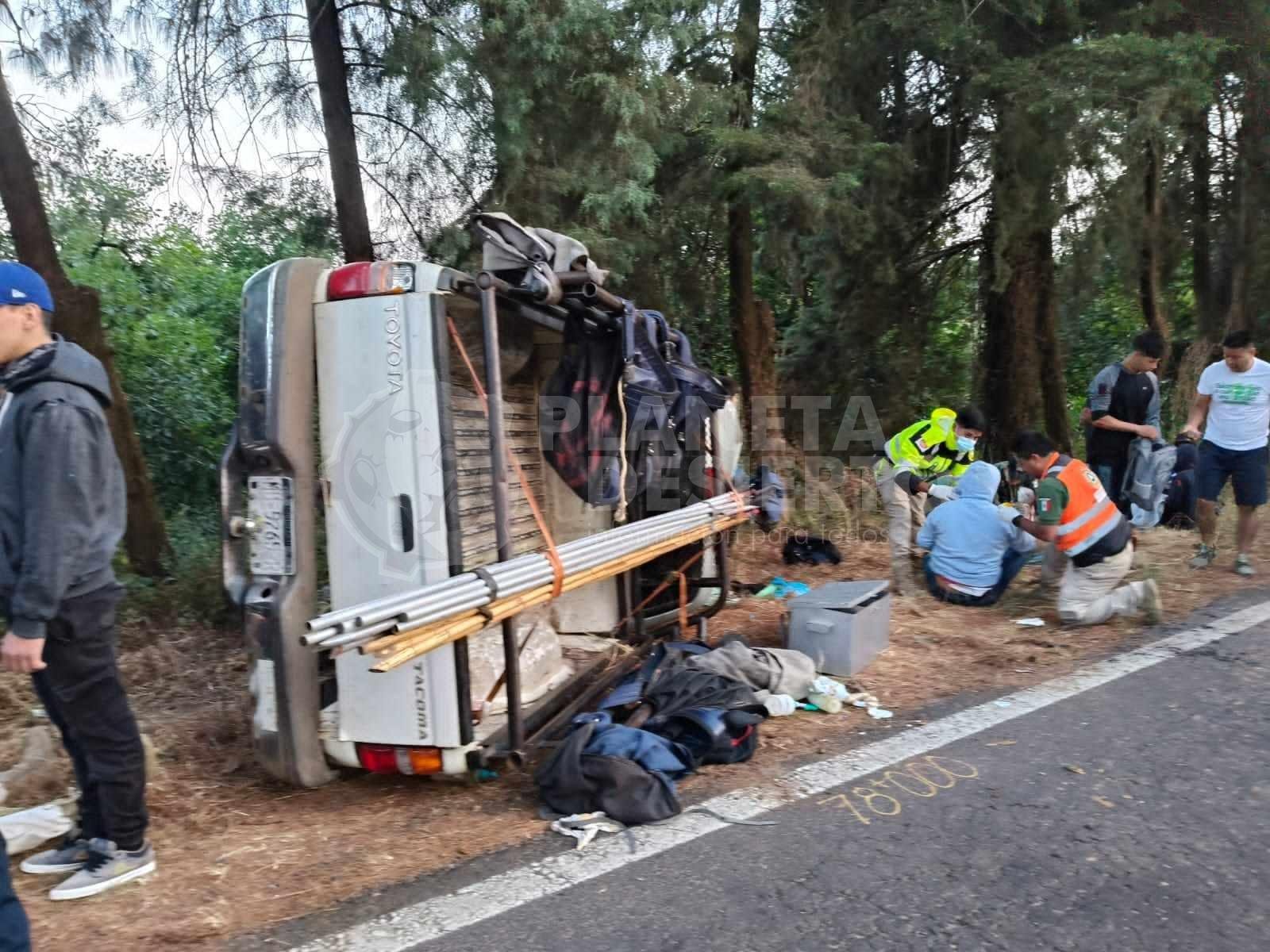 Lesionados 12 cortadores de aguacate al chocar contra camión y volcar su camioneta