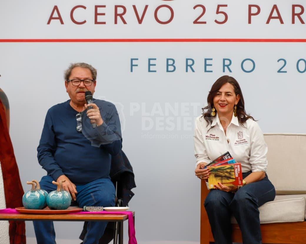 Asimismo, reconoció la visión de la presidenta Claudia Sheinbaum Pardo, así como del gobernador Alfredo Ramírez Bedolla, a quienes agradeció por el valioso esfuerzo que se lleva a cabo para transformar a nuestro estado. Los 200 mil libros que llegarán incluyen la colección «25 para el 25» y títulos como Operación Carlota, de Gabriel García Márquez; Los privilegios del olvido, de Piedad Bonnett; Duermevelas, de Adela Fernández; Canto villano, de Blanca Varela; Vientos de primavera, con prólogo de Elena Poniatowska, de Alaíde Foppa, entre muchos otros.