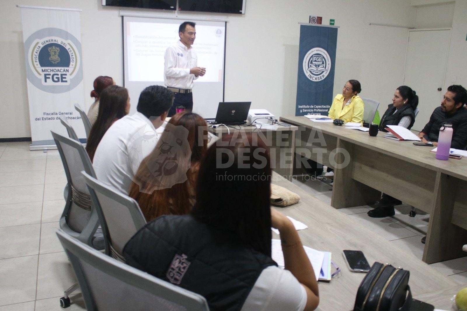 Morelia, Mich.- 27 de septiembre de 2024.- Con el objetivo de prevenir la comisión de delitos contra la salud y adicciones en la entidad, la Fiscalía General del Estado de Michoacán (FGE) impartió una serie de charlas denominadas “Consumo de drogas ilegales y sus impactos sociales”, a personal de la Secretaría de Salud.