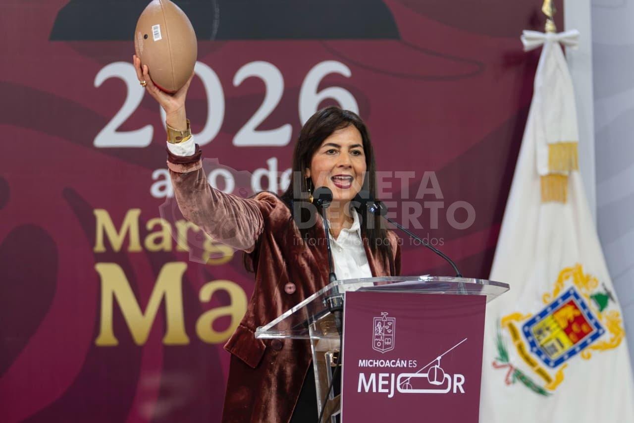 Morelia, Michoacán, 10 de febrero de 2026.- Con el apoyo de la presidenta Claudia Sheinbaum Pardo se impulsa la permanencia escolar a través de becas; así Michoacán se consolida como un referente nacional con apoyo para estudiantes de todos los niveles y con la nueva Beca Gertrudis Bocanegra, esquema que brinda mil 900 pesos bimestrales para transporte de universitarios, destacó la secretaria de Educación, Gabriela Molina.