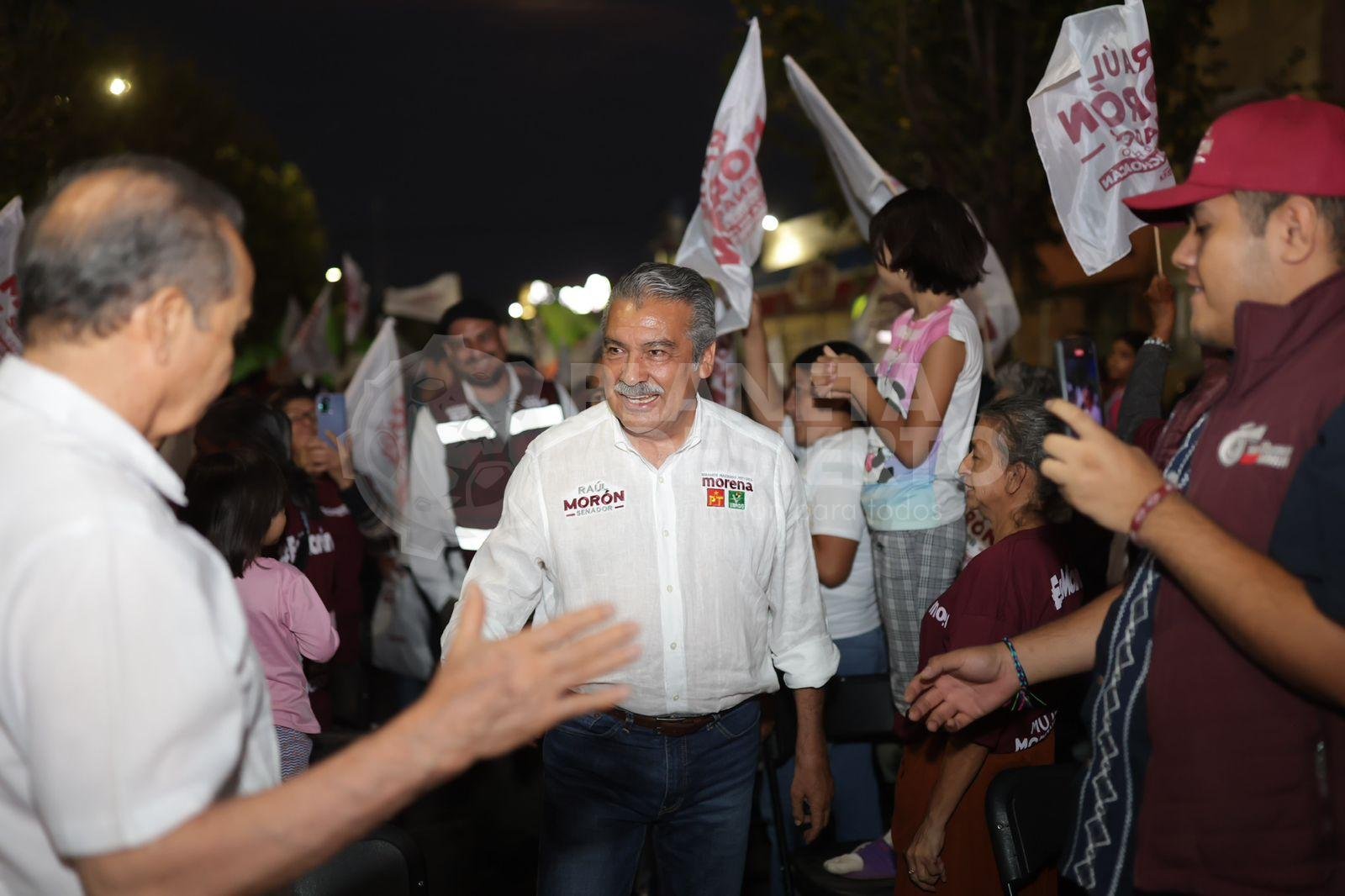 Morelia, Mich., a 23 de abril de 2024.- Respaldado por cientos de morelianos cansados de ser relegados por el neoliberalismo, Raúl Morón Orozco, candidato al Senado por Michoacán, auguró qué la Cuarta Transformación volverá a imperar en la capital del estado.