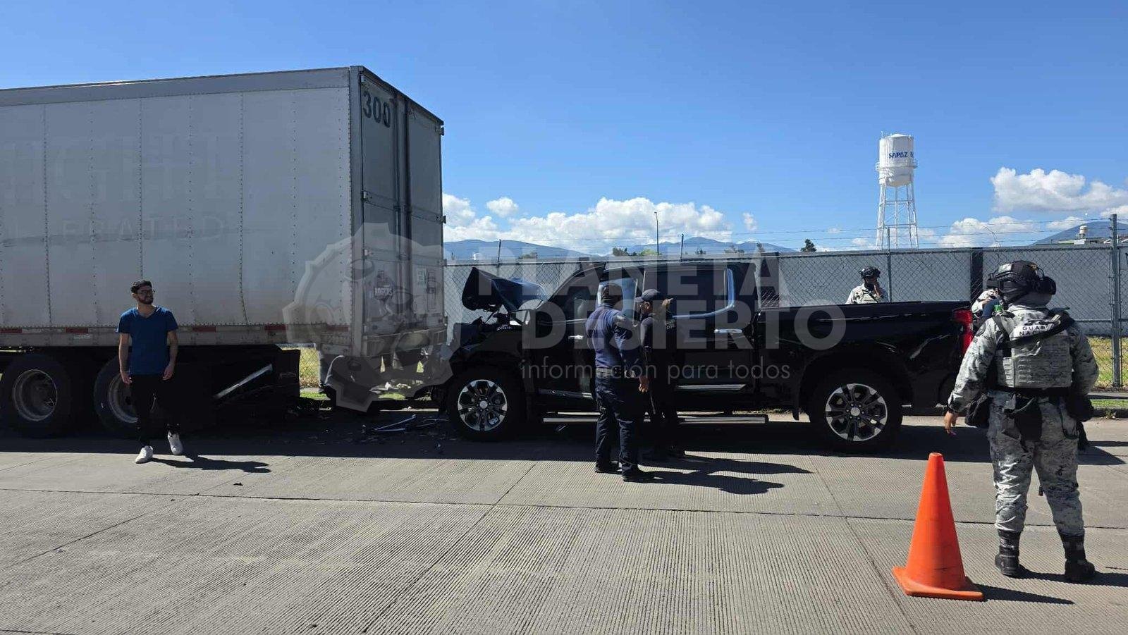 El aparatoso accidente se registró la mañana de este sábado en la Avenida Ferrocarril justo frente al Fraccionamiento Kuntani, hasta donde llegaron oficiales de la Guardia Civil y Nacional para brindar seguridad y agilizar la vialidad.