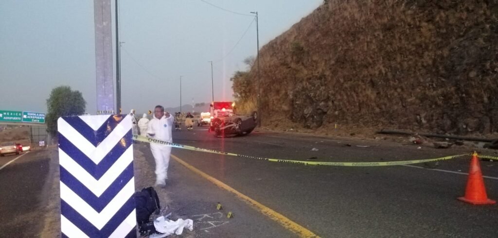 Morelia, Mich.- 10 de marzo de 2023.- Un automóvil chocó contra un objeto fijo y terminó volcado sobre el camino Morelia – Recinto Ferial, hecho que dejó a una persona del sexo femenino sin vida.