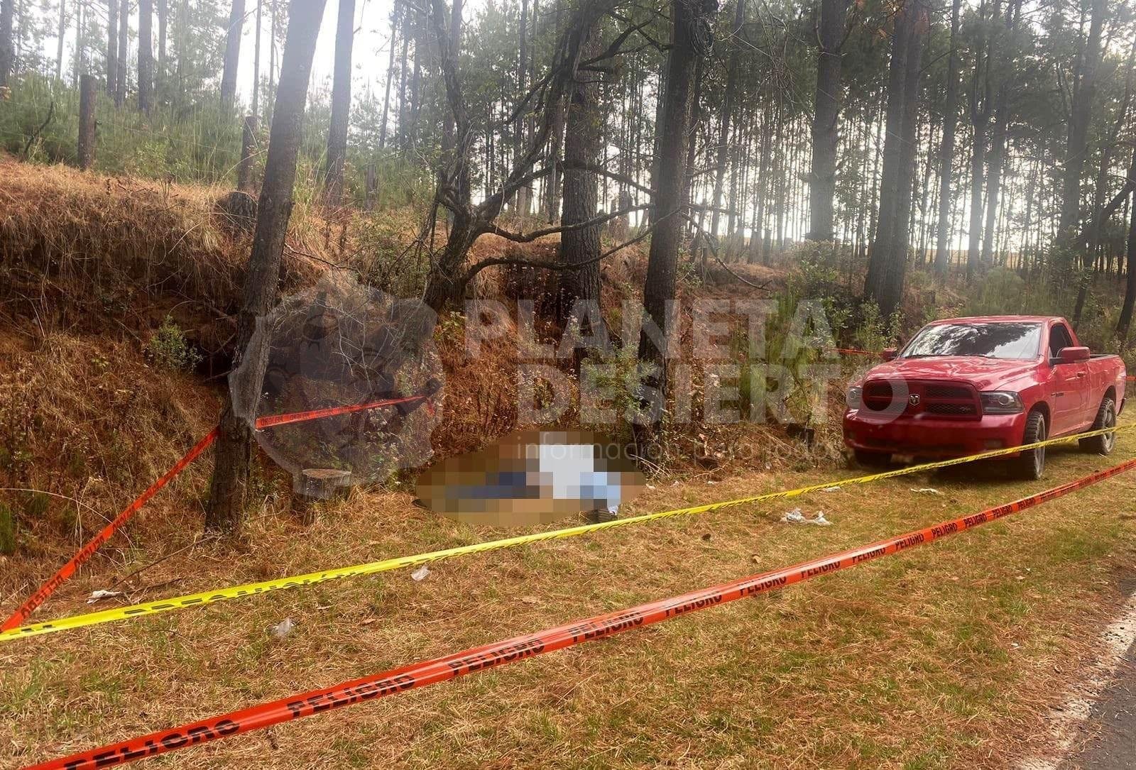 + Los cadáveres yacían a la orilla de la carretera Opopeo-La Estacada, afuera de una camioneta roja.