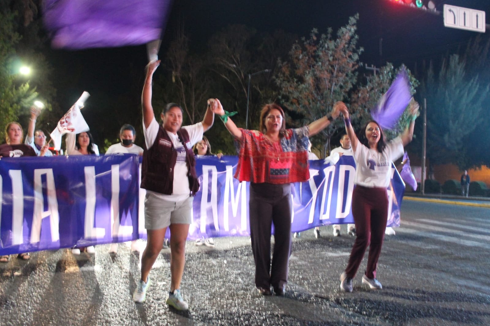 Con ubicación en ambos sentidos de la vialidad y al unísono de la porra «es un honor estar con Claudia hoy», se ondearon los banderines, se hicieron sonar las matracas y se vistió el entorno con luces y bombas de humo moradas y verdes. De manera personal, la ex titular de la Comisión Nacional para Prevenir y Erradicar la Violencia contra las Mujeres (CONAVIM) entregó los documentos que detallan las acciones que conforman el plan de gobierno propuesto por la abanderada de Morena.