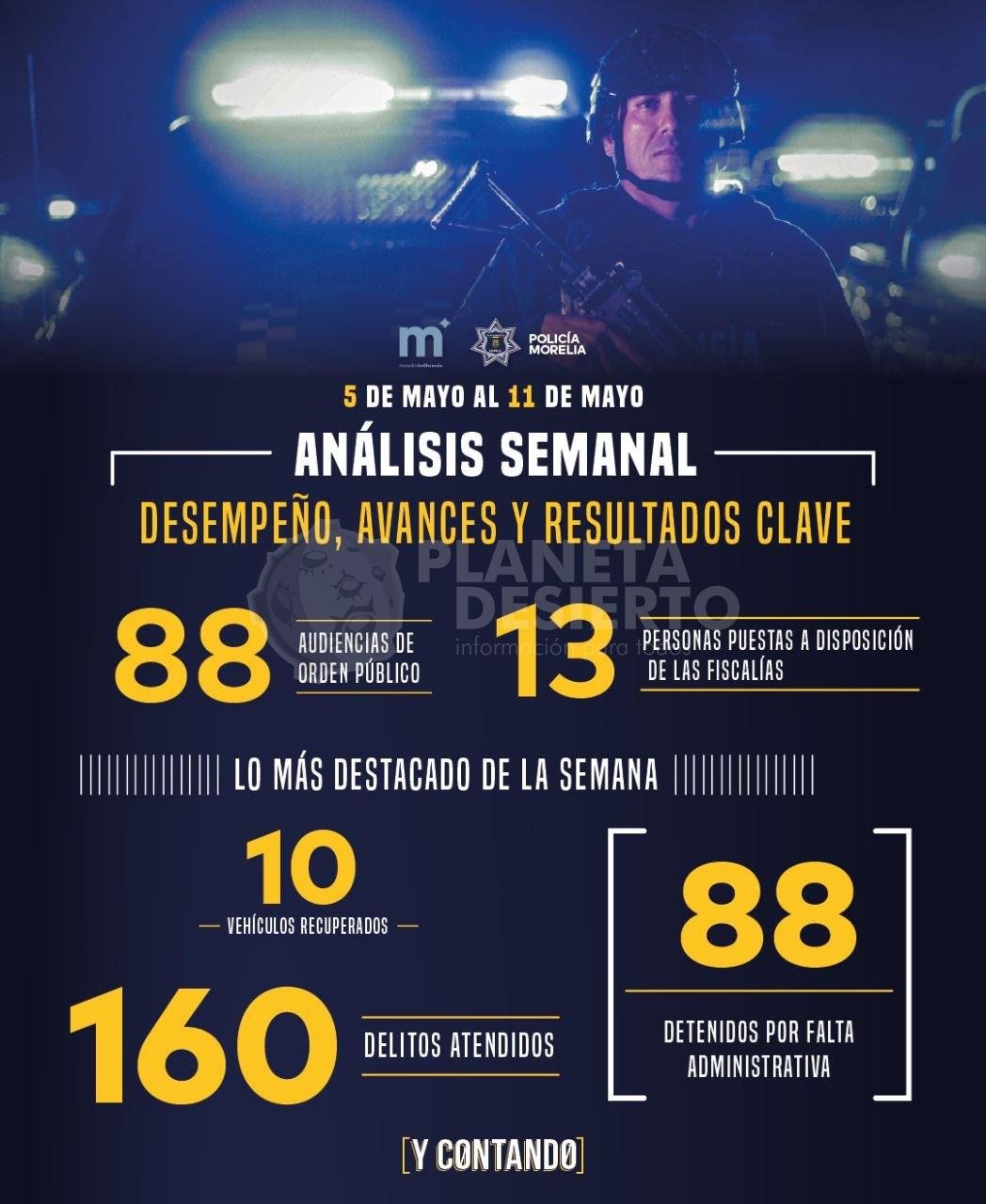 Durante la semana del 05 al 11 de mayo de 2025, los oficiales de Policía Morelia lograron resultados contundentes que reflejan su entrega diaria al servicio de la ciudadanía: