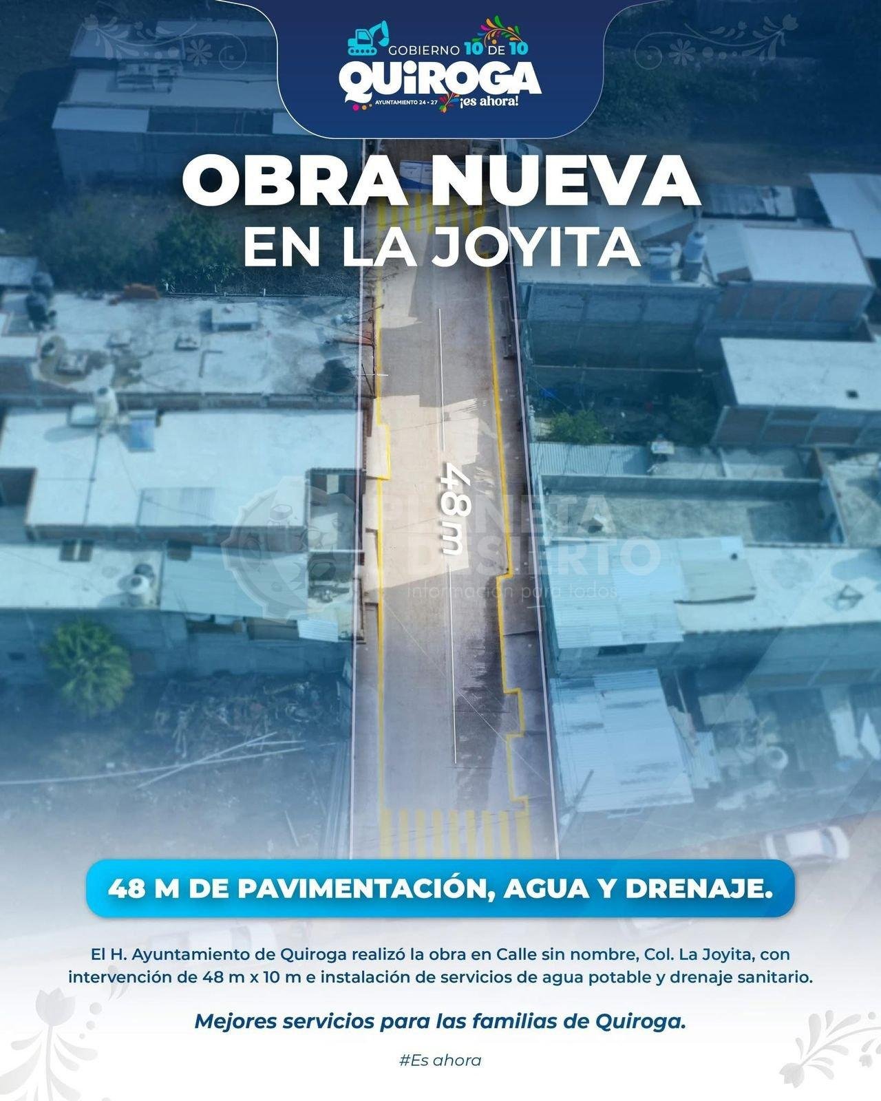 Quiroga, Michoacán, a 9 de febrero del 2026.– Con acciones concretas que impactan directamente en la vida diaria de las familias, el Gobierno Municipal de Quiroga continúa cumpliendo con hechos, es así que la presidenta municipal, Alma Mireya González Sánchez, encabezó la entrega de una obra integral de pavimentación, agua potable y drenaje sanitario en la colonia La Joyita, refrendando el compromiso de su administración con el desarrollo ordenado del municipio.