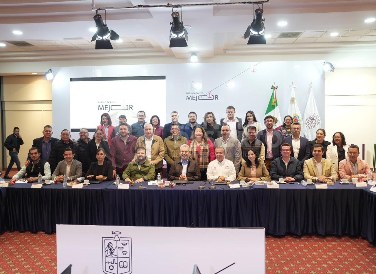 En la reunión también participaron los secretarios de Gobierno, Raúl Zepeda Villaseñor; de Finanzas y Administración, Luis Navarro García; y la titular de Educación, Gabriela Molina, quienes expusieron los alcances, objetivos y estrategias del Plan Michoacán..