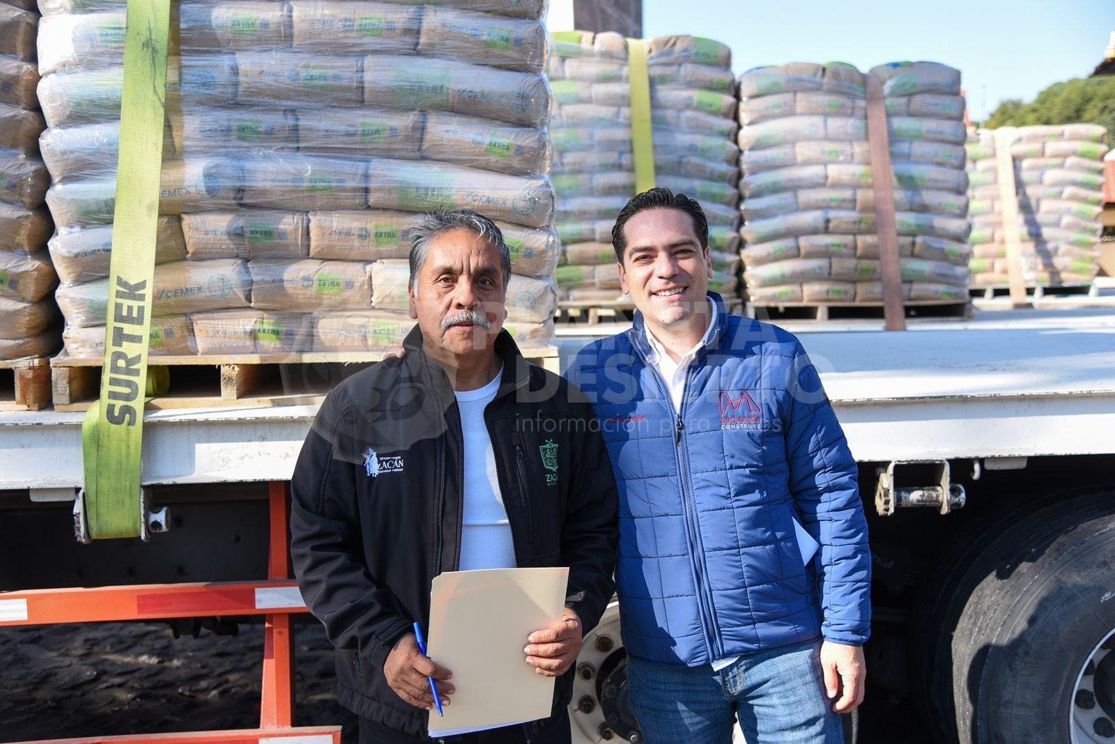SCOP entrega 36 toneladas de cemento a Zacán para obras por cooperación