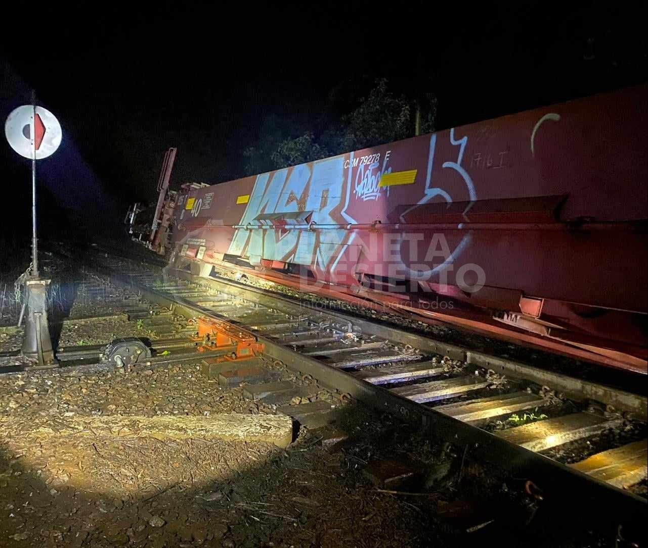 Al menos siete remolques se salieron parcialmente de las vías, de acuerdo con contactos allegados al tema, los cuales agregaron que al parecer el accidente se derivó del reblandecimiento del suelo a causa de la lluvia.