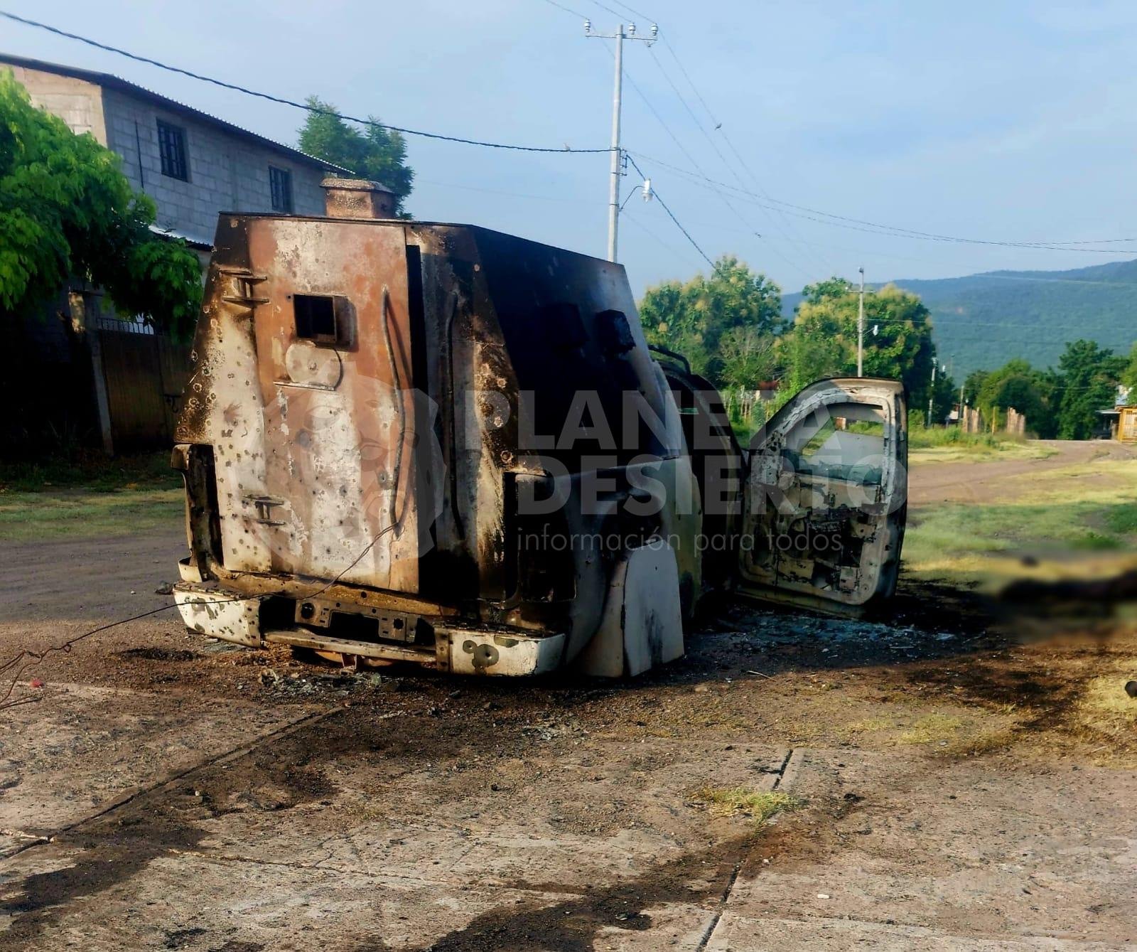 De forma inmediata hasta el sitio se trasladaron policías y elementos de Fuerzas Federales, los cuales hallaron cerca del Centro de Aprendizaje Comunitario (CCA), una vehículo con blindaje artesanal, mismo que presentaba múltiples impactos de proyectil y estaba quemado.