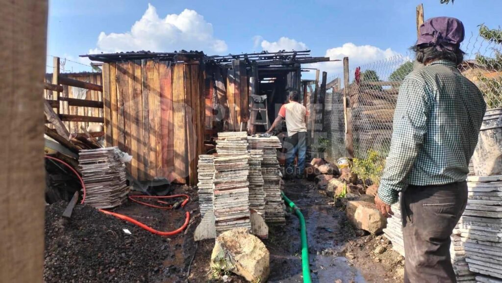 Morelia, Mich.- Una casa de madera y láminas de cartón ardió en llamas durante la tarde de este viernes en el asentamiento irregular El Polvorín, ubicado al poniente de Morelia.