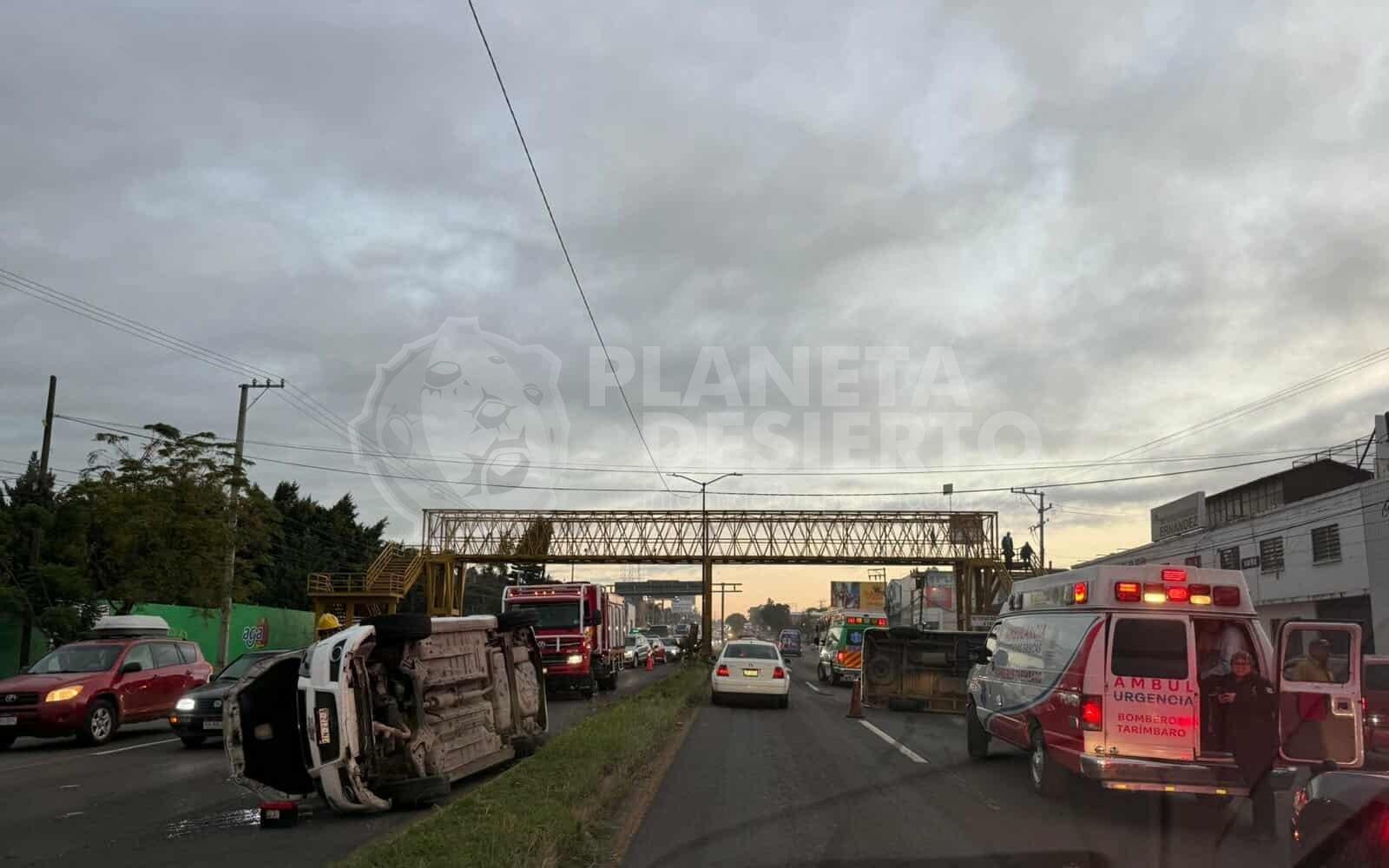 El aparatoso accidente se registró durante la mañana de este lunes a la altura de la colonia Los Ángeles, frente a la refresquera Aga.