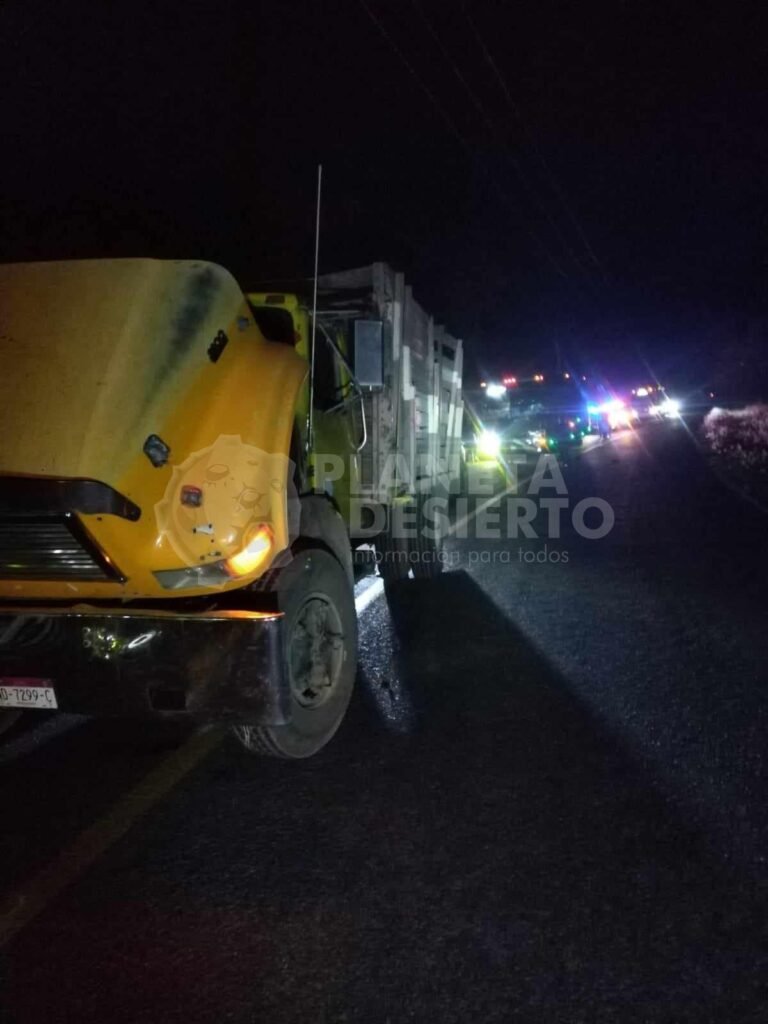 Se apareció que los vehículos involucrados son: un autobús Mercedes Benz, colores gris con verde y placa 555HV6; y un camión Ford, color amarillo, con placa ND7299C.