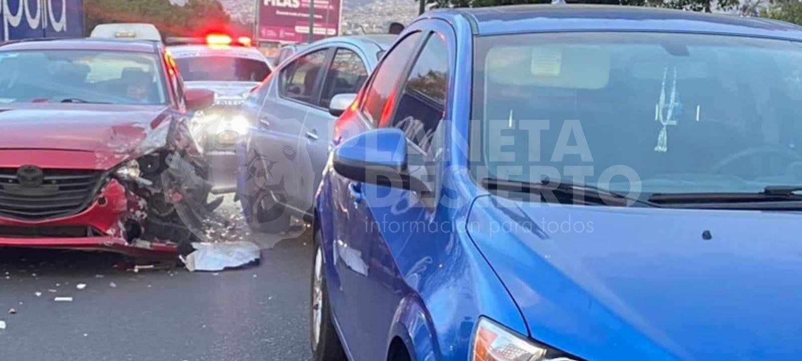 Morelia, Mich.- Tres vehículos participaron en un choque sobre el Periférico Paseo de la República, en el Sector Independencia de la ciudad de Morelia. Por fortuna no hubo lesionados, comentaron autoridades policiales.