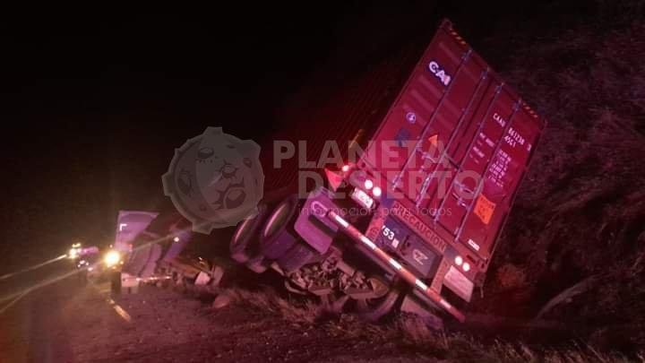 Primeramente, cerca de la medianoche, un tractocamión con doble semirremolque estuvo a punto de volcar en el kilómetro 162, quedando ambos contenedores ladeados sobre el acotamiento, sin que su tripulante resultara lesionado.