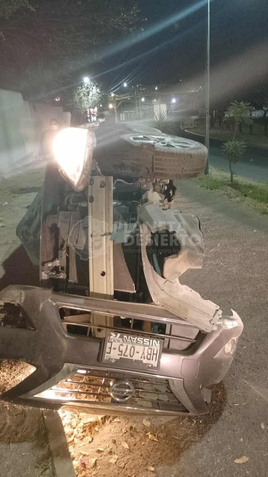 Se trató de un automóvil que presuntamente circulaba a una velocidad mayor a la permitida; salió intempestivamente de la carpeta asfáltica y terminó volcado y destrozado en una calle paralela.
