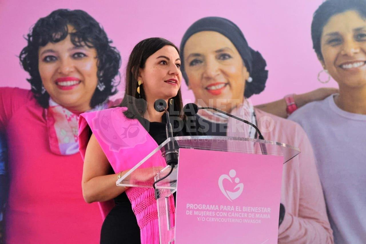 Morelia, Michoacán, 12 de diciembre de 2025.- Beneficiarias del programa Mujeres con Cáncer de Mama y/o Cervicouterino Invasor, tendrán acceso al programa a distancia de Rehabilitación para Personas con Mastectomía, informó la titular de la Secretaría del Bienestar (Sedebi), Andrea Serna Hernández.
