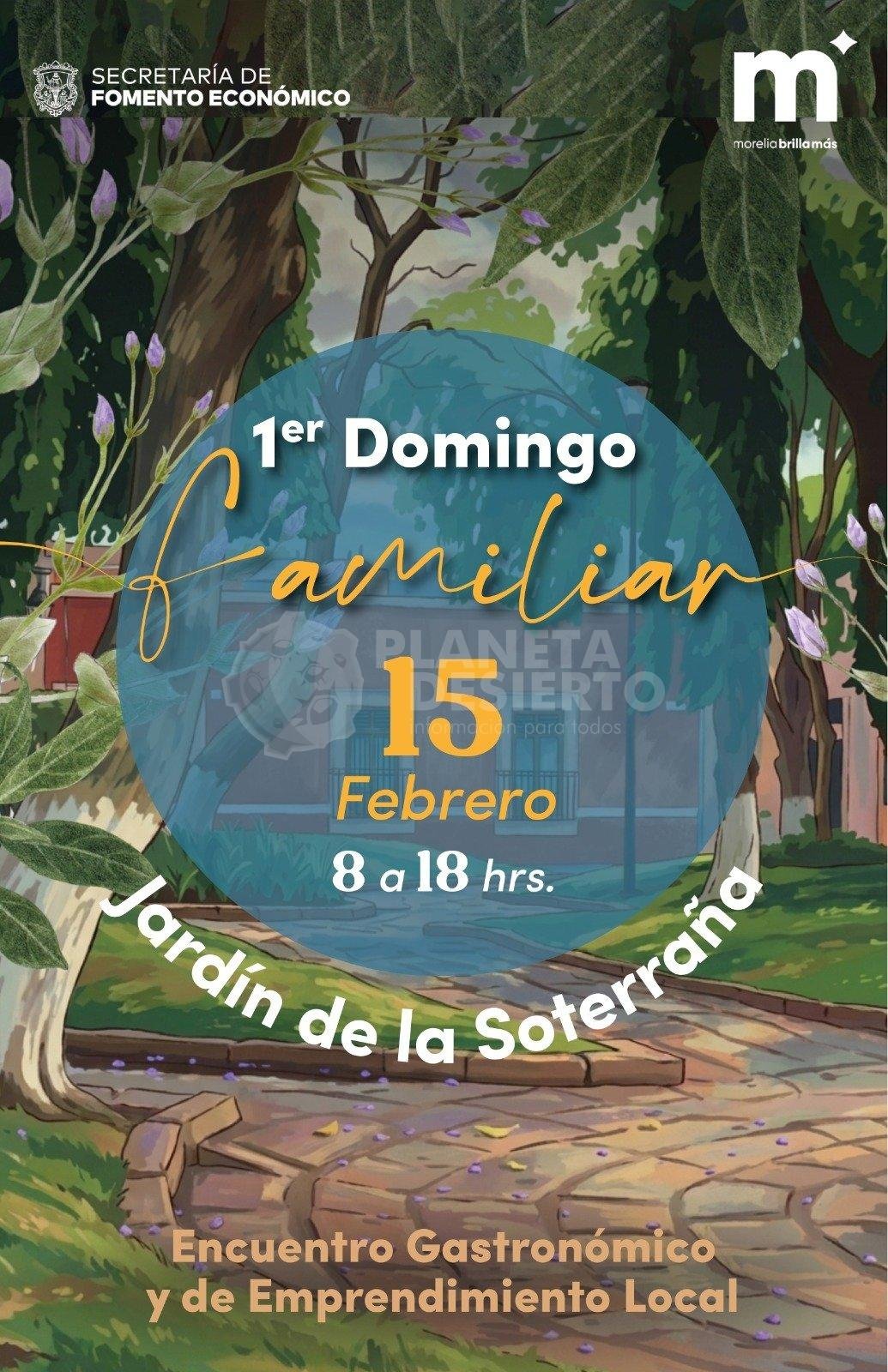 Morelia, Michoacán; 12 de febrero de 2026.– El gobierno encabezado por el presidente municipal de Morelia, Alfonso Martínez Alcázar, a través de la Secretaría de Fomento Económico (Sefeco), invita al encuentro de gastronomía y emprendimientos «Domingo Familiar» que se llevará a cabo el próximo 15 de febrero en el Jardín de La Soterraña.