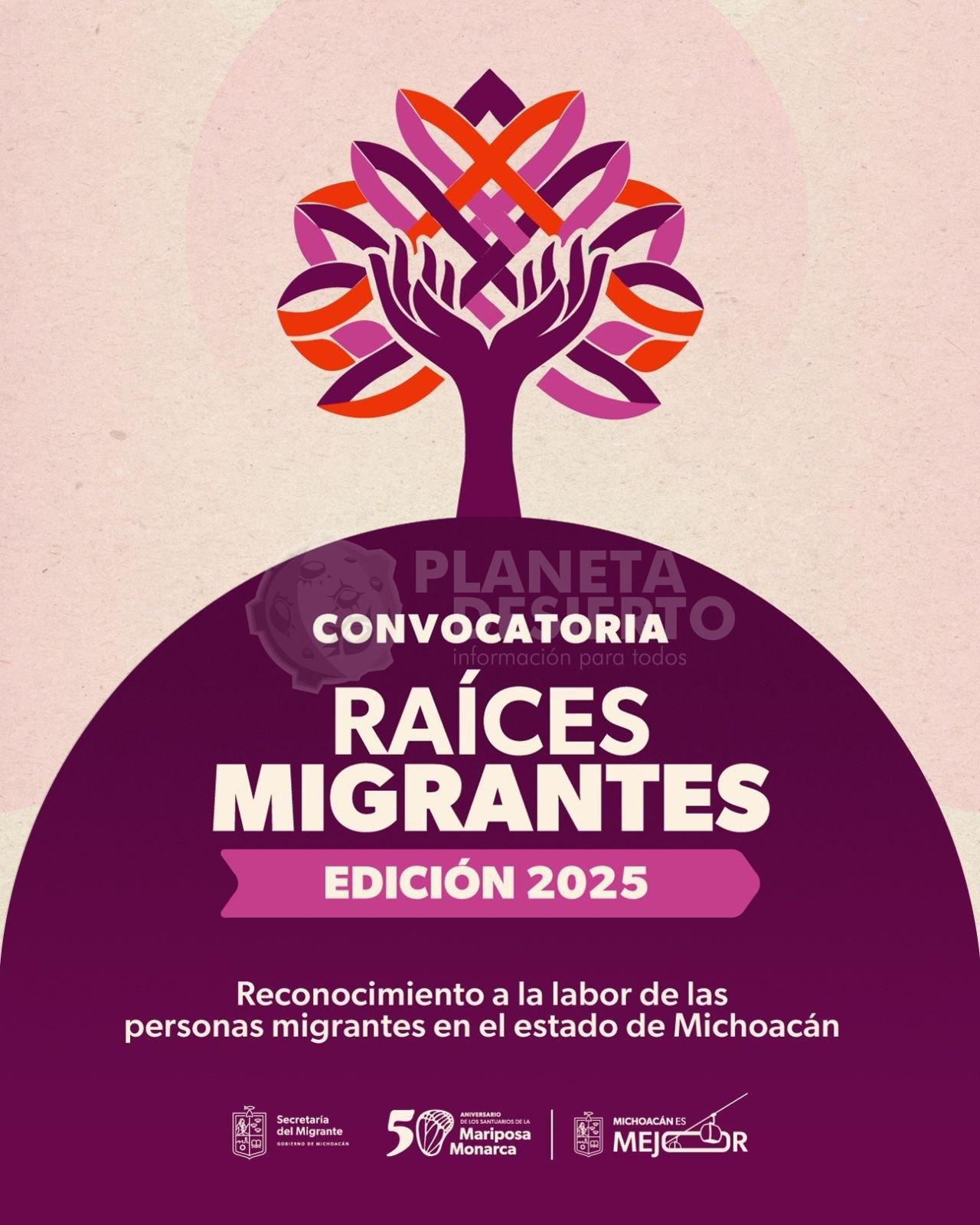 Morelia, Michoacán, 3 de noviembre de 2025.- La Secretaría del Migrante (Semigrante) busca reconocer a las y los michoacanos que, desde el extranjero,contribuyen al desarrollo de sus comunidades de origen y fortalecen el vínculo con Michoacán, Por ello, se les invita a participar en la convocatoria Raíces Migrantes 2025, la cual estará abierta hasta el próximo 14 de noviembre.