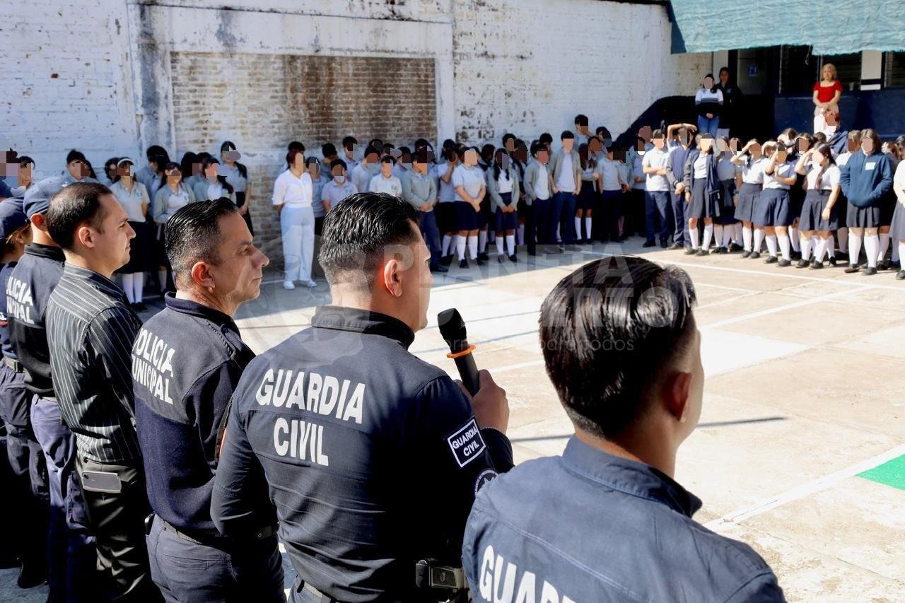Personal del Agrupamiento de Proximidad Social de la Guardia Civil imparte pláticas sobre educación vial, prevención de conductas de riesgo, medidas contra la extorsión y uso adecuado del número de emergencias 911, reforzando así la cultura de la legalidad desde edades tempranas.