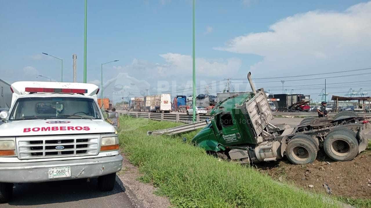 Lázaro Cárdenas, Mich.- 21 de septiembre de 2024.- Un tractocamión se salió de la carpeta asfáltica y se fue a un canal de desagüe pluvial de la autopista Siglo XXI, sin que afortunadamente hubiera personas lesionadas a decir de fuentes de rescate.
