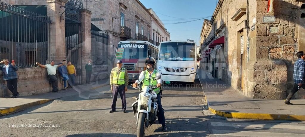 Morelia, Mich.- 01 de junio de 2023.- Desde temprana hora al menos 200 unidades del transporte público se apostaron sobre la avenida Francisco I. Madero, en el corazón de la ciudad de Morelia, en protesta porque el día de hoy se leerá la Ley de Movilidad y Seguridad Vial del Estado, en la que se buscará regular al transporte por aplicación, lo que a decir de los manifestantes les afecta de manera directa.