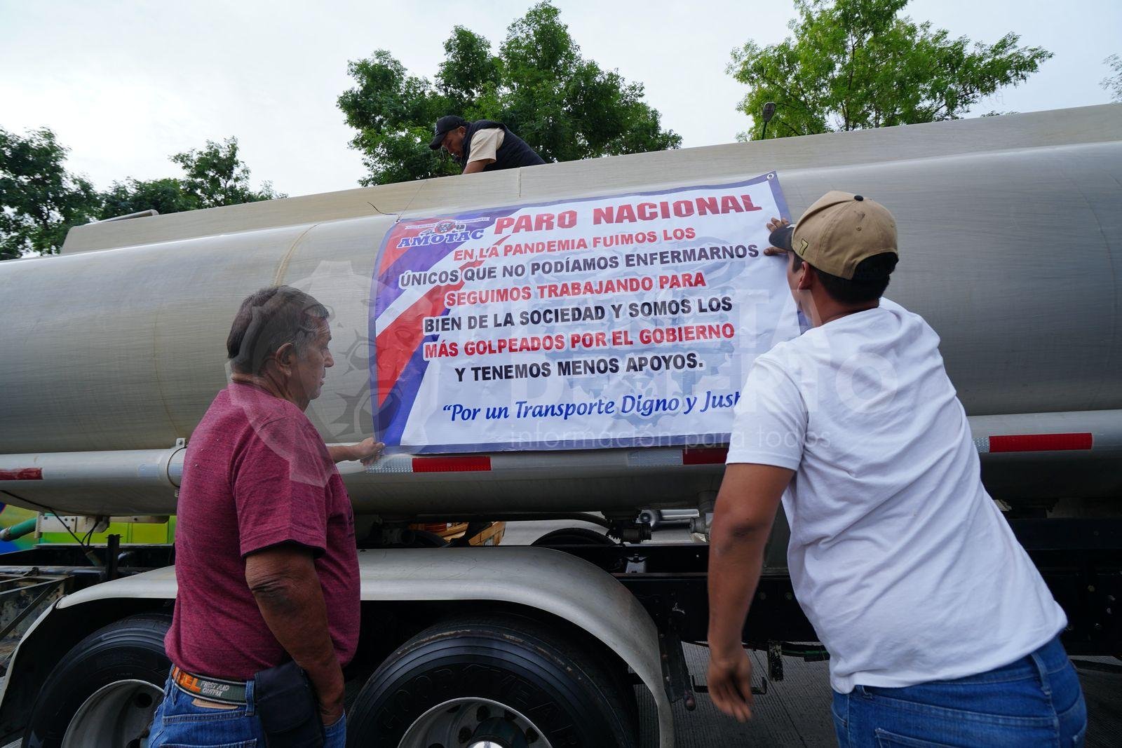Durante la mañana un nutrido grupo de tráileres, torton y autobuses se reunieron en las inmediaciones de la Terminal de Autobuses de la ciudad e Uruapan, donde colocaron lonas y mantas en las unidades, con las demandas de mayor seguridad y un alto a las extorsiones por parte de las autoridades y los ayuntamientos.