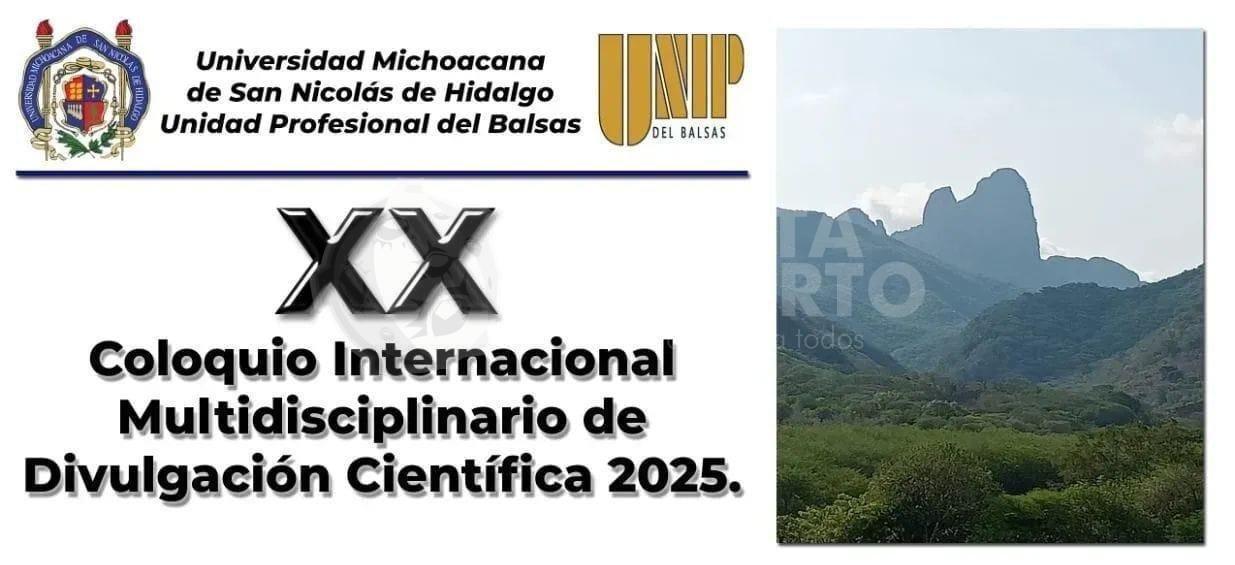 Morelia, Michoacán, a 05 de noviembre de 2025.- Refrendando su compromiso con la formación integral, la investigación científica y la vinculación social, la Universidad Michoacana de San Nicolás de Hidalgo (UMSNH) a través de la Secretaría Académica y la Unidad Profesional del Balsas, convoca al XX Coloquio Internacional Multidisciplinario de Divulgación Científica, un espacio propicio para la divulgación del conocimiento científico y el intercambio de resultados de investigación, que se llevará a cabo de manera presencial del 24 al 27 de noviembre en las instalaciones de dicho plantel, ubicado en el municipio de Huetamo.