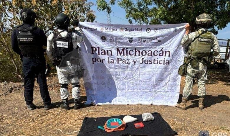 Huetamo, Michoacán, 20 de enero del 2026.- Resultado de dos acciones operativas realizadas en las últimas horas, elementos de las secretarías de Seguridad Pública (SSP), de la Defensa Nacional (Defensa), Guardia Nacional (GN) y la Fiscalía General del Estado (FGE) detuvieron a un hombre y aseguraron más de 4.5 kilogramos de marihuana, así como 900 gramos de sustancia granulada con las características propias de la metanfetamina.