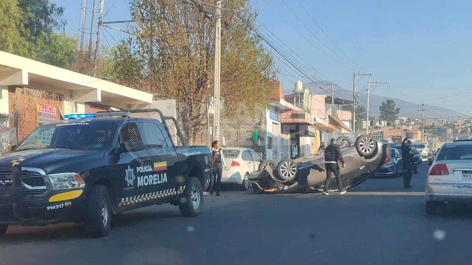 Morelia, Mich.- Martes 17 de febrero de 2026.- La mañana de este martes se registró la volcadura de un vehículo sobre la avenida San Juanito Itzícuaro, al poniente de la ciudad de Morelia, informaron autoridades policiales, las cuales agregaron que el conductor resultó levemente herido.